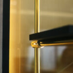 On closer inspection, the glass screen reveals an additional layer of refinement: a champagne gold metal mesh embedded within the glass, framed with integrated LED lighting. This combination introduces a soft, diffused glow and a sense of atmosphere, balancing transparency with texture for a visually captivating effect.