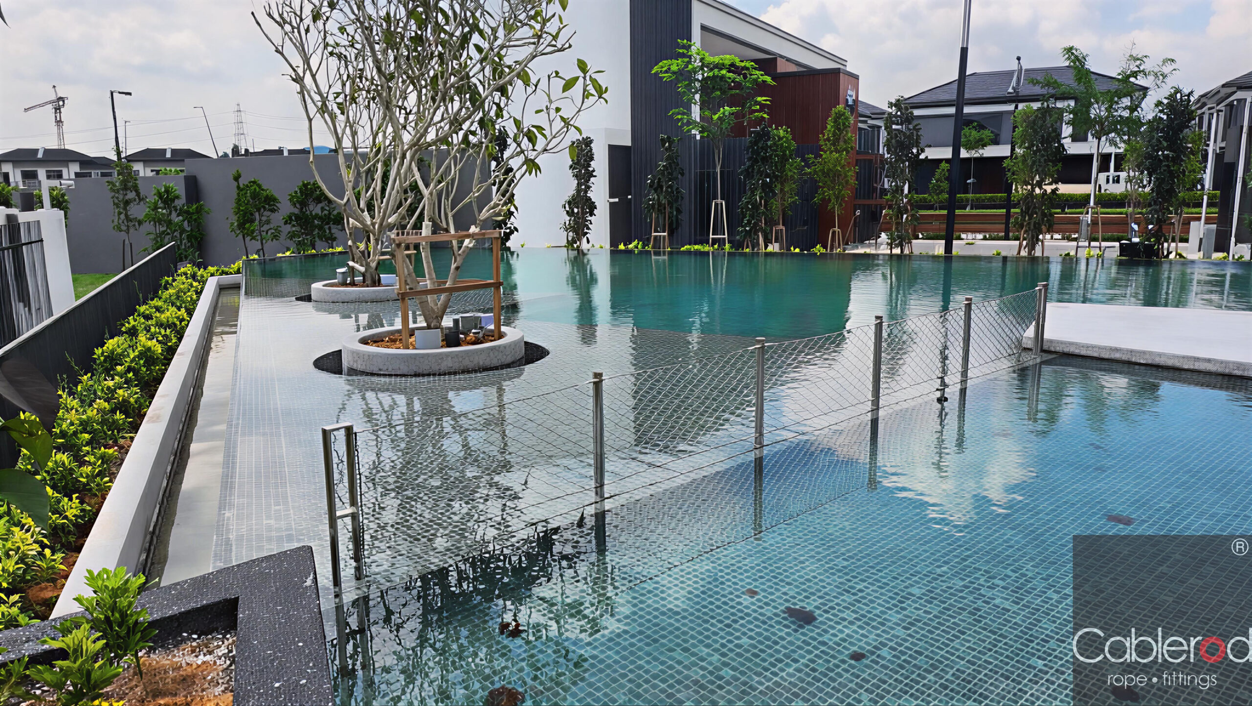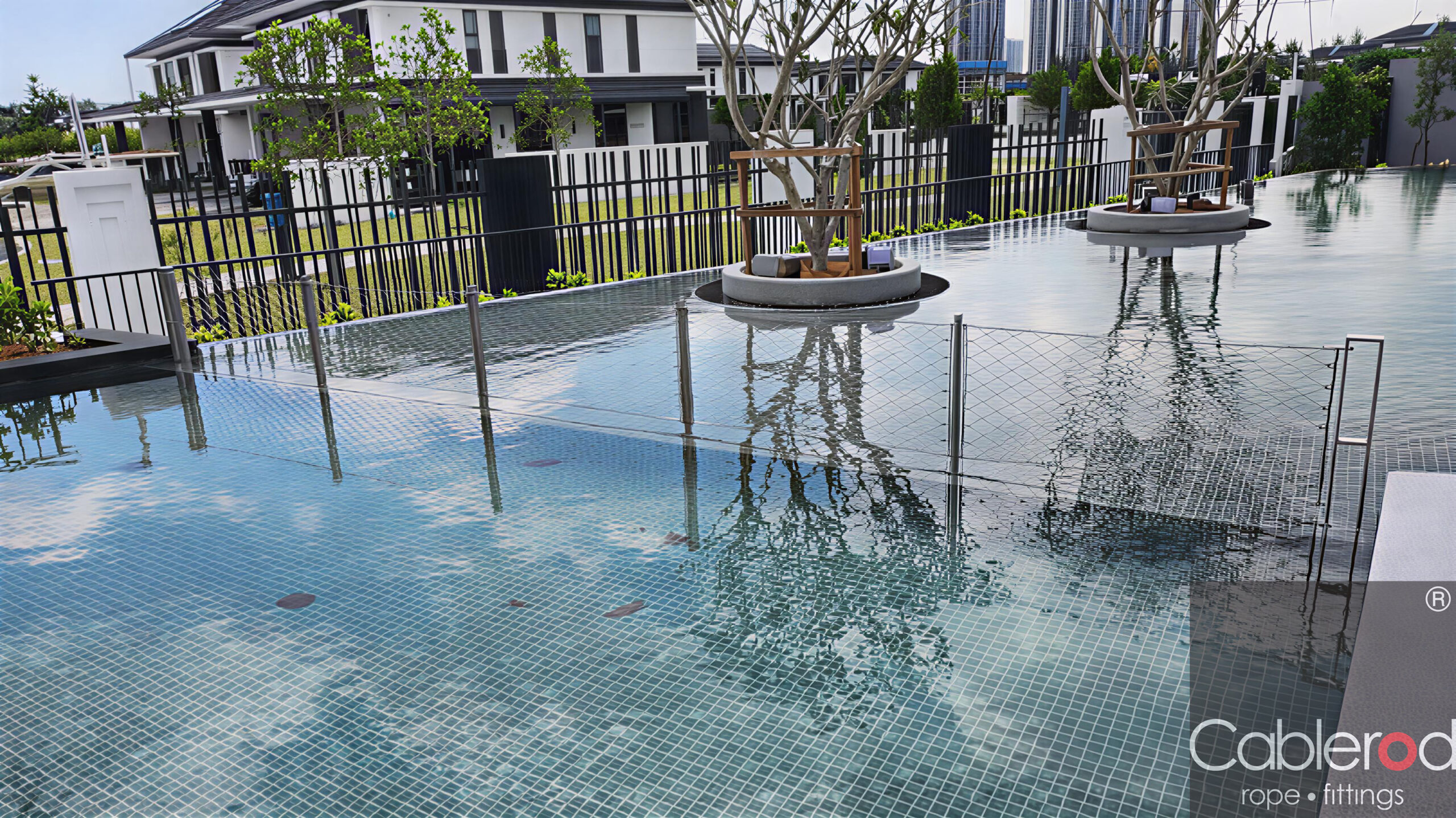 This installation uses stainless steel Cable Netting as a pool divider, bringing safety, visibility, and design clarity together in one clean structure. Instead of solid walls or bulky fencing, the netting forms a transparent barrier that keeps the pool area secure while maintaining its open, resort-like atmosphere.